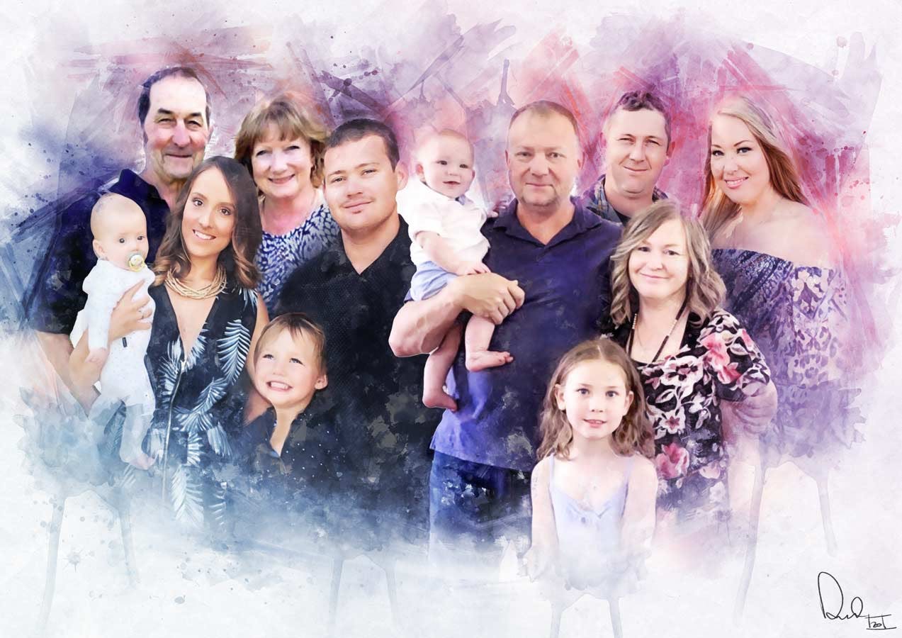 My mum passed away last year and I wanted to get a family portrait done to give my dad. Dan used multiple photos to bring us together into one digital drawing. He listened to my brief and feedback and was very patient. The end result is perfect and Iβm very happy with his work! Iβll definitely use his services again. Thank you so much, Dan.Β